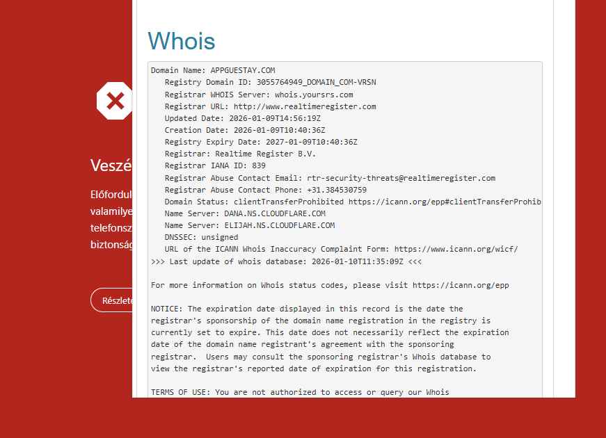 A parancssori elemzésünk szerint az indított URL így nézett ki: https://booking.appguestay.com/i/992XXXXXXX?firstname=lastname=XXXXXX+Tamás&email=X@X.hu&phone=209876XXX…