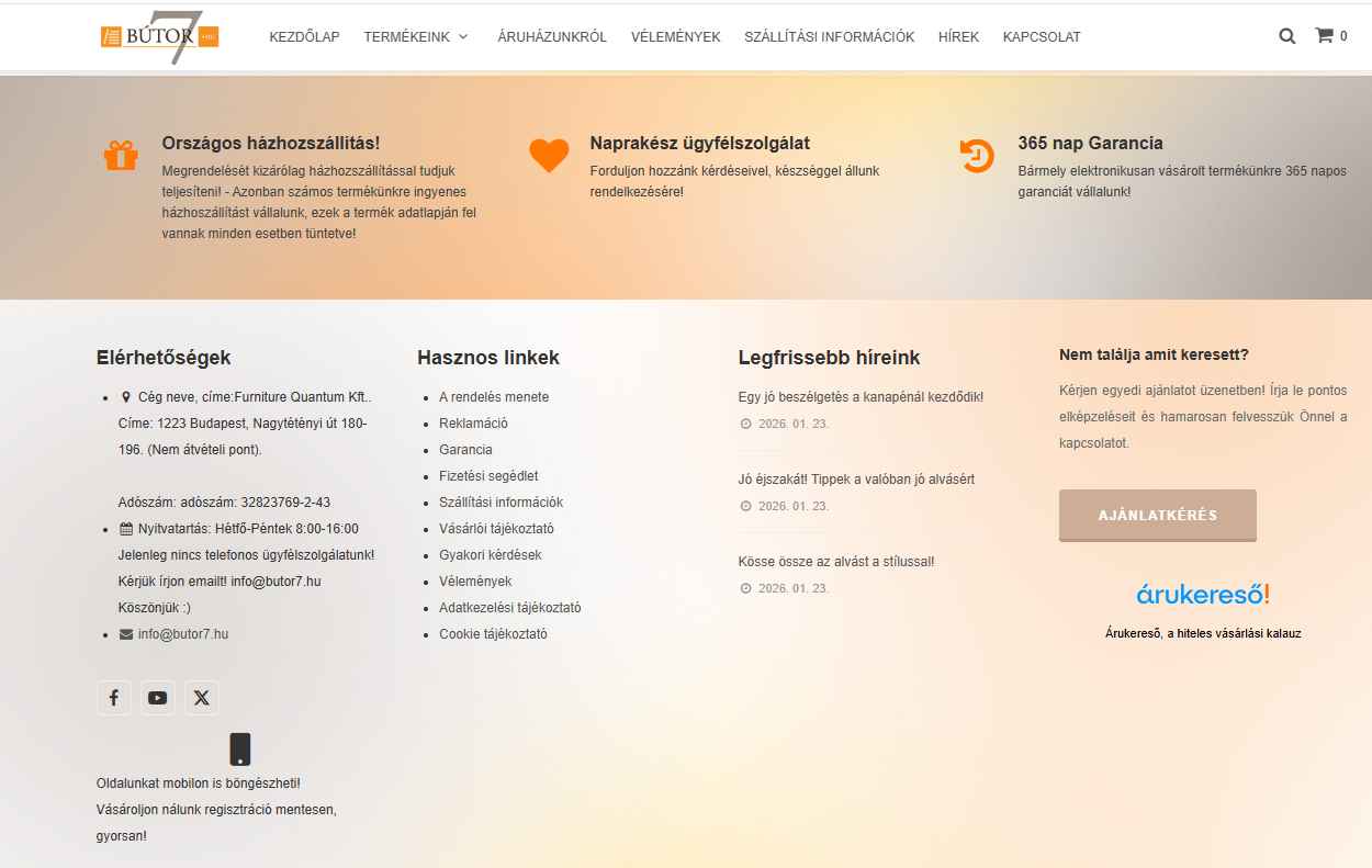 Furniture Quantum kft -a butor7.hu -n szereplő aktuális cég.