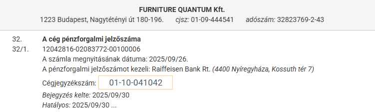 Furniture Quantum kft és az adószáma : 32823769-2-43