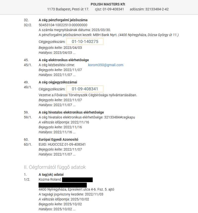 A cég korábbi vezetője nem más mint a Polish Masters kft ügyvezetője: