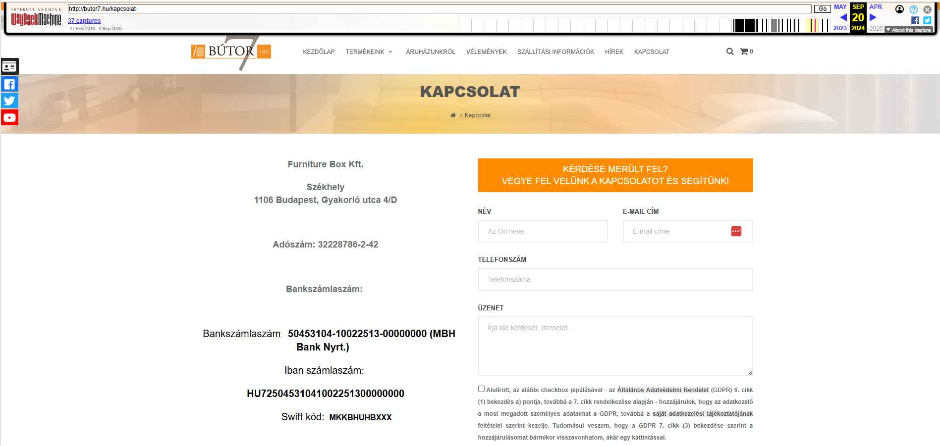 Bizony ennek aszámlaszáma, nem az ami a butor7.hu weboldalon található mint „kapcoslat”, hanem az egy másik cégé, de nem véletlen elírás 1 betű vagy bármi.