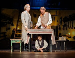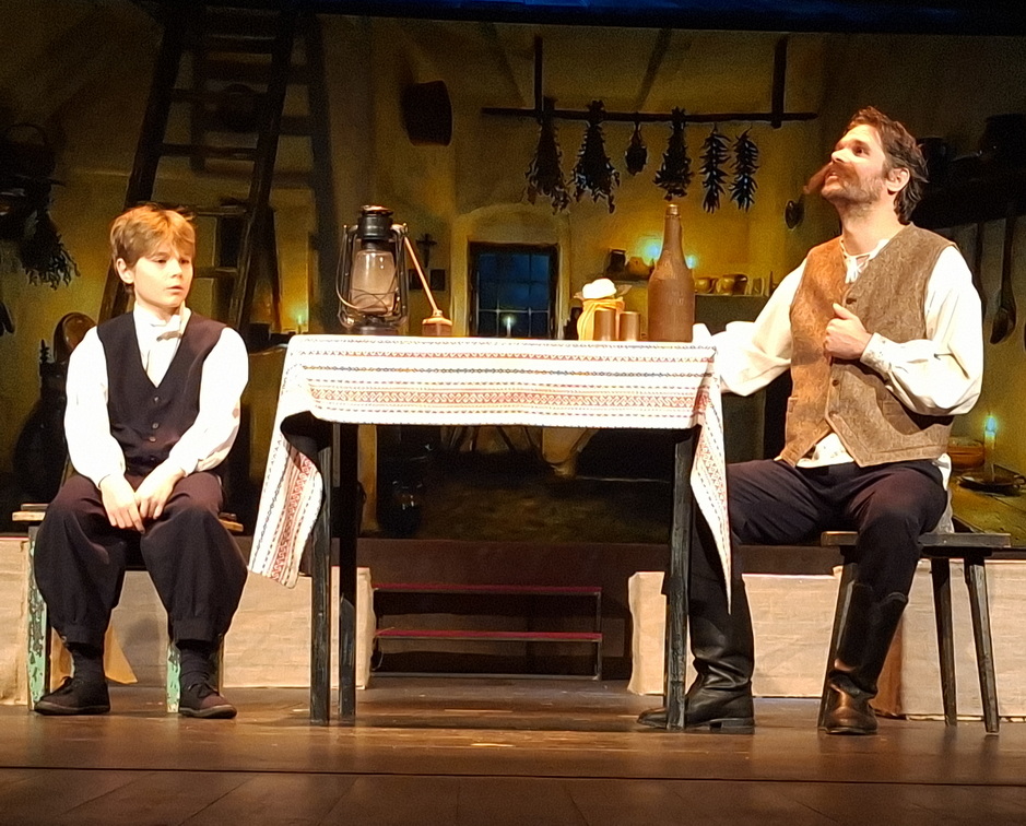 A nyitóképben Arany Jánost (Tóth János Gergely) látjuk a kisfiával – a nevét egy Petőfi versből tudja mindenki: Laci (Alakszai Kristóf Boldizsár). Itt kapja Arany a felkérést a Ferenc József császárt dicsőítő vers írására. A jelentben máris van egy kis előrekacsintás napjainkig, nem áruljuk el hogyan, biztosan észre fogja venni mindenki. A tapasztalt színházlátogató viszont ebből már arra is következtet, lehetnek még hasonlóak az est folyamán. Jobban kezd figyelni – és igaza lesz! A nem túl gerinces jellemű barát távozása után viszont megint egy érdekes mozzanat következik. A költő, jó apa módjára felhasználja a lehetőséget a gondolkodva nevelésre és a döntésbe bevonja a fiát.