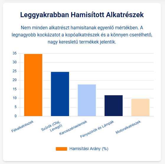 A „lángoló” alkatrészek és a motor halála: A veszély nem csupán mechanikai. A hatóságok által lefoglalt hamisítványok között találtak már nem lángálló anyagból készült légszűrőket, amelyek egy visszadurranás esetén lángra kaphatnak, valamint ólmot és arzént tartalmazó fékbetéteket, amelyek pora súlyosan károsítja a környezetet és az egészséget. A motor élettartamát pedig közvetlenül fenyegetik az olyan hamisítványok, mint a gyenge minőségű olajszűrők, amelyek nem képesek kiszűrni a kopadékot az olajból, vagy a hamis gyújtógyertyák, amelyekről letörő elektródadarabok tönkreteszik a dugattyút és a hengerfalat.