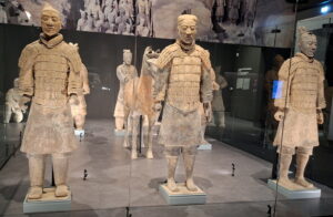 Kína első császára, Csín Si Huangti, tizenhárom évesen, a Kr. e. 3. század második felében került az egymással hadakozó hét kínai fejedelemség egyikének trónjára. A Kr. e. 210-ben, 49 évesen elhunyt uralkodót egy városnyi méretű sírkertben temették el, amelynek építésén 33 éven át folyamatosan több százezer ember dolgozott. Kína első császárának sírját őrző, életnagyságú terrakotta- (agyag-) katonákat felvonultató hadsereg figuráira 1974-ben találtak rá a környéken kutat ásó földművesek. A szabályos hadrendben eltemetett katonák ezrei máig a kínai régészet legismertebb leletei. Fél évszázad tudományos eredményei és ismeretei összegződnek e kiállításban, így minden korábbinál árnyaltabb és letisztultabb képet mutat az első kínai császári dinasztia koráról és az ókori birodalom működéséről. A Múzeum mostani kiállítása a nagyságát és az eredeti műtárgyak számát tekintve páratlan.