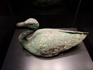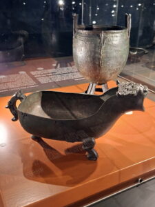 Bármennyire furcsán hangzik ennek a kiállításnak van egy nagyon sajátos magyar vonatkozása is. A magyarság gyökerei ugyanis Kína határánál a sztyeppe vidéken erednek, a kínai nagy fal külső oldalánál élt nomád népek között lelhetők fel. Az agyagkatonákat bemutató kiállításnak van egy társkiállítása a szomszédos Michelangelo-teremben, „A Nagy Falon innen és túl” címmel. Ázsiai hunok, kelet-ázsiai nomádok és kínaiak ókori bronztárgyai alkotják. Az i. sz. előtti 8. századtól az i. sz 3. századig terjedő időszak tárgyait a két világháború között kezdte el gyűjteni a Hopp Ferenc Ázsiai Művészeti Múzeum akkori igazgatója, Felvinczi Takács Zoltán. A nemzetközi mércével mérve is kimagasló bronztárgy anyagból itt 300 darab látható. Megtudhatjuk, hogy a számszeríj kínai találmány, sőt az ismétlő számszeríj is, amiből 15 nyílvesszőt lehetett kilőni! A Szépművészeti Múzeum május 25-ig várja látogatóit, e valóban világszenzációt jelentő kiállítás megtekintésére.