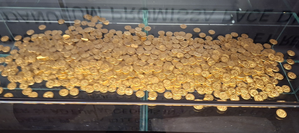 Az előtérből a fantasztikus filmek világát idéző időalagúton át jutunk a belső térbe, ahol aztán a néző nem győz csodálkozni. A látvány páratlan! Talán csak a Nemzeti Bankban van egyszerre, egy helyen, annyi arany, mint amennyi most itt, a tárlókban megtalálható. Nem fog csalódni, aki csak a kincsek megcsodálása okán jön el a múzeumba. De az is jól jár, aki többet szeretne megtudni erről a különleges személyiségről, aki képes volt egy hatalmas birodalmat létrehozni. Mítosza a mai napig él és közismert, nevét évszázadokon át rettegve emlegették. Nem mellesleg, elválaszthatatlanul része a magyar őstörténet legendáriumának, évszázadokon keresztül magunkénak gondoltuk őt és sokan még ma is annak hiszik. Bizonyosan hozzá köthető, személyes tárgyak nem maradtak fönn, hitelesnek tekinthető, kortárs írott forrás is csak másolatban. Priszkosz rétor, görög történetíró találkozott vele, írt róla, ebből másolt részleteket ismerünk.  Ha belegondolunk abba, hogy ez az ember ezerhatszáz éve nem él, és mi itt 2026-ban vitatkozni tudunk azon, ki mit hisz róla? Ezt pontosan érzékelteti, hogy ő mennyire fontos, az emléke mennyire élő. Erről a kiállítás termeiben, a falakon sok érdekes ismertetést olvashatunk. Ám a legtöbben a „Vörös teremben” töltik majd az időt az aranypénzeket bemutató vitrin előtt. A Hódmezővásárhely közelében fekvő Szikáncson, 1963-ban egy pulykáit őrző asszony botja fordította ki az első darabokat a földből, a többit a pulykák kaparták ki. Ez páratlan és a mai napig is a legnagyobb, 1444 darabból álló aranyérem együttese a Kárpát-medencének! Valószínűleg ezzel váltotta meg Bizánc, hogy Attila serege ne rohanja le a várost. Vadonatúj, fényes érmék, tehát nem használt darabokból szedték össze! A vezértől persze nem csak Bizánc rettegett. Attila, Mundzsuk fia, feltehetően az V. század elején született. Életéről keveset tudunk. Testvére Bleda (Buda) társuralkodójaként került 434-ben a birodalom trónjára, Bledát megölte, utána egyedül uralkodott. Minden lehetséges módon az uralma alá hajtotta a körülötte, Kínától nyugatra élő törzseket, birodalmának népessége ezért roppant vegyes volt. Már életében legendák övezték, az „Isten kardja” megtalálásból erdő isteni elhivatottságában ő maga is hitt! Pusztán a nemzetségéhez tartozás is kiváltságot jelentett, ezért sokan akarták, hogy ez róluk nyilvánvaló legyen. A különféle sírmellékletekből egyértelműen azonosított hun sírokból meglepően nagy számban – 30%-ot kitevően – kerültek elő mesterségesen, csecsemő korban kötözésekkel torzított koponyák. Ők lehettek a hun előkelőség. A csontok vizsgálata egy másik eredményt is hozott. Jó ideje már a magyarság mondakörébe tartozik a hun-magyar azonosság. Sokan hitték-hiszik Attilát az Árpádok ősapjának. Csak hát Attila hunjainak eltűnése és Árpád magyarjainak megjelenése között van vagy ötszáz év! A nemzetközi nyelvész közösség váltig állítja: a magyar finnugor nyelv, ha csak a hunok nem beszéltek finnugor nyelven, de ez alig valószínű – az inkább valamilyen türk lehetett. A genetika a másik, igen határozott, döntő érv. A DNS alapú rokonsági vizsgálatok ma már perdöntő erejűek. A bizonyosan hun sírokban talált csontok DNS állománya – összevetve honfoglaláskori magyar sírokéval, 1-3 %-os egyezést mutat. Ez azt jelenti, hogy 97-99 %-ban nincs egyezés! Ennek leginkább a Habsburgok örülnek, mert ők gyakran vettek feleségül Árpád-házi hercegnőt – tehát ma ők lennének Attila legközelebbi rokonai! Nem lenne ez azért sem jó, mert Attila seregei feldúlták az akkori Európa nagy részét. Innen származik az „Isten ostora” elnevezés, de persze ez sem az ő korából. Akkor senki nem nevezte így. Jó 150 évvel a halála után mondta róla Szent Izidor. Később a katolikus egyház szentjei, legnagyobb teológusai egészen a XIV. századig állították, hogy isten büntetését képviselte. Alátámasztotta ezt a „Tízezer szűz” legendája is. Orsolya, egy brit keresztény királylány, fogadalmat tett, hogy szűz marad, de kénytelen volt feleségül menni egy pogány herceghez. A monda szerint őt kisérő rengeteg leánnyal, hajóval utaztak végig a Rajnán, érintve Kölnt és Baselt, majd gyalog mentek volna Rómába. Kölnnél a hunok fogságába estek, nem voltak hajlandók megtagadni hitüket és Orsolya elutasította a hunok vezérének házassági ajánlatát. A hunok mindnyájukat lemészárolták. Viszont a galliai és itáliai emlékezet, a Balkán földúlása, eleven nyomokat hagyott, hun ellenes sebeket ejtett. Ami ott tragédia, számunkra lehetne Anonymustól és Kézai Simontól kiinduló dicsőség – magyarázva az Árpádok ősapja mesét.