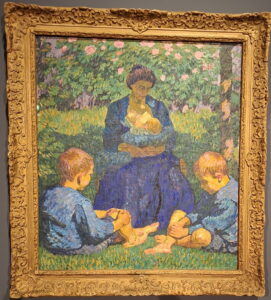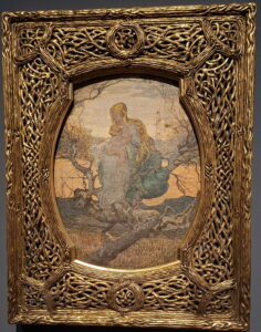 A kurátorok a kortárs festők közül többnek az alkotását is beemelték a kiállításba. Közülük kiemelkedik Giovanni Segantini egyik legfontosabb műve, amely a budapesti múzeum tulajdona. Az 1894-95 körül készült, „Az élet angyala” című festmény a kicsi korában elveszített édesanya utáni örök sóvárgásnak állít emléket. A képen a reneszánsz Madonna-ábrázolásokból ismert kettős, az anya és gyermeke, gyengéd ölelésben összefonódó alakja látható. A legnagyobb gondossággal kivitelezett műhöz a festő saját maga készítette el a sűrű faágak fonadékát idéző, szecessziós fakeretet. Az ikonszerű szakralitást sugárzó képen egy száraz fa koronájában ül az anya gyermekével. Az őszies tájban lebegő alakjukat az életfaszimbólumként is értelmezhető fa ágai fészekszerűen, védelmezően ölelik körül.