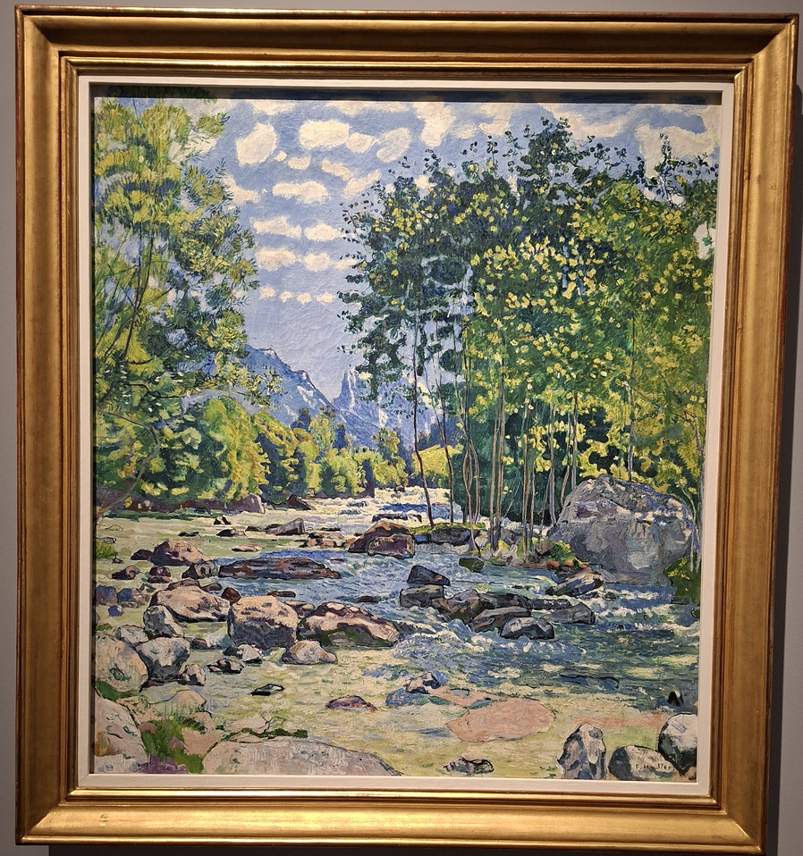 Hodler tájképfestészetének fontos témáit láthatjuk „A fenséges tükröződése” kiállításrészben. Ezen az 1905-ben festett képen a folyó az előteret szinte teljesen elfoglalja, így mögötte a 3960 méter magas hegy szinte jelentéktelennek látszik A természeti jelenségeket megfigyelve, a színek és formák szabálytalan ismétlődéséből vezette le egyik legfontosabb, az egész életművén végighaladó művészeti elvét: a párhuzamosságot. A természet rendezetlen rendjének, a jelenségek ismétlődésének és a táji elemek látszólagos párhuzamosságának felfedezése vezette el komplex szimmetriaelméletének kidolgozásához és képi alkalmazásához. A fenti tematikához szorosan kapcsolódva a „Táguló horizontok” részben tavakat, a „Megérinteni a végtelent” elnevezésű részben pedig hegyeket ábrázoló festményeit mutatja be a kiállítás.