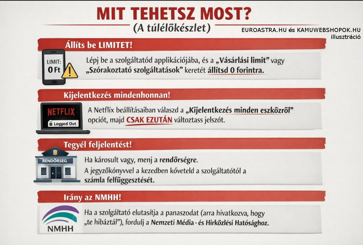 A szolgáltatók sokszor alapbeállításként magas hitelkeretet adnak az ügyfeleknek. Ha nincsenek beállítva a vásárlási limitek, a csalók akár 800 000 forintig is „legyalulhatják” a számládat percek alatt.