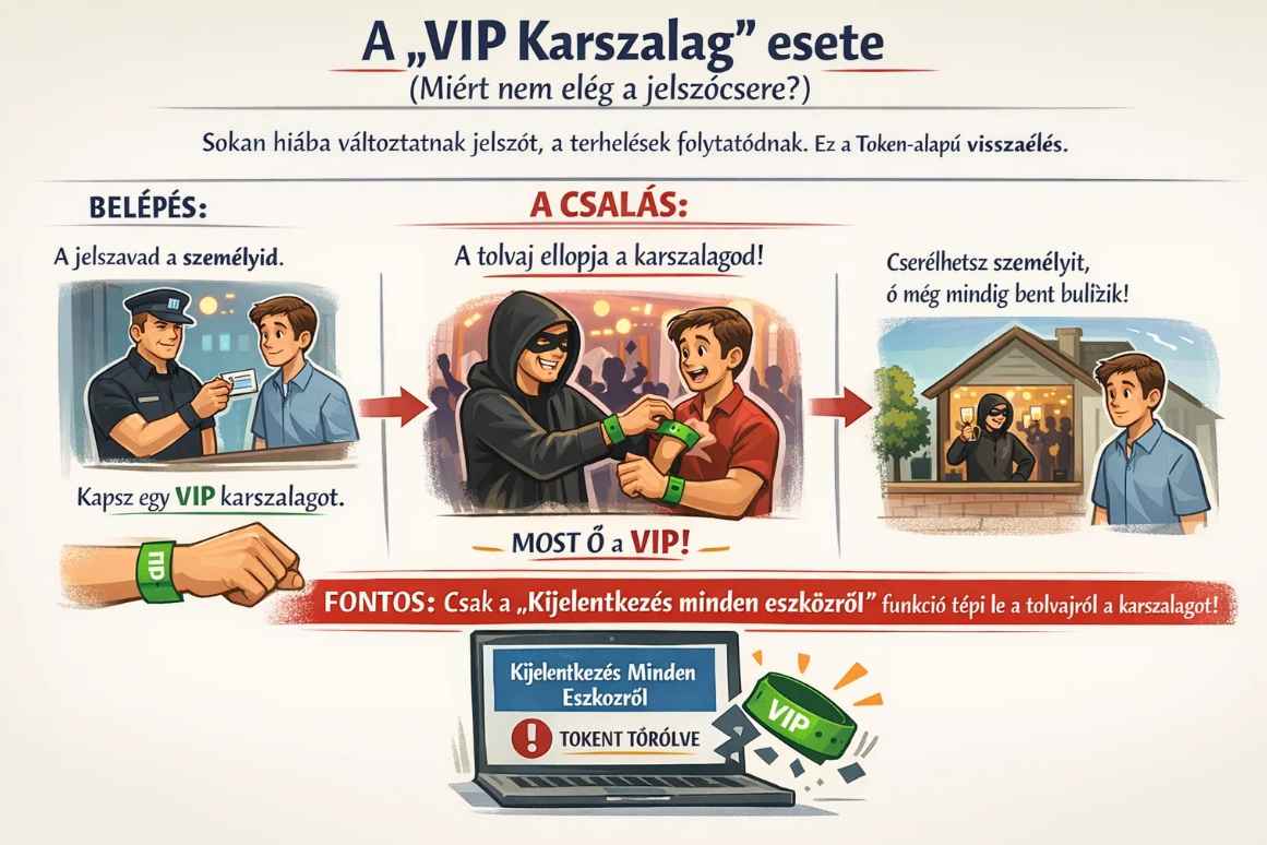 Példa: A jelszavad a személyid, amivel belépsz a buliba. A belépés után kapsz egy VIP karszalagot (Tokent), hogy ne kelljen újra és újra igazolnod magad.